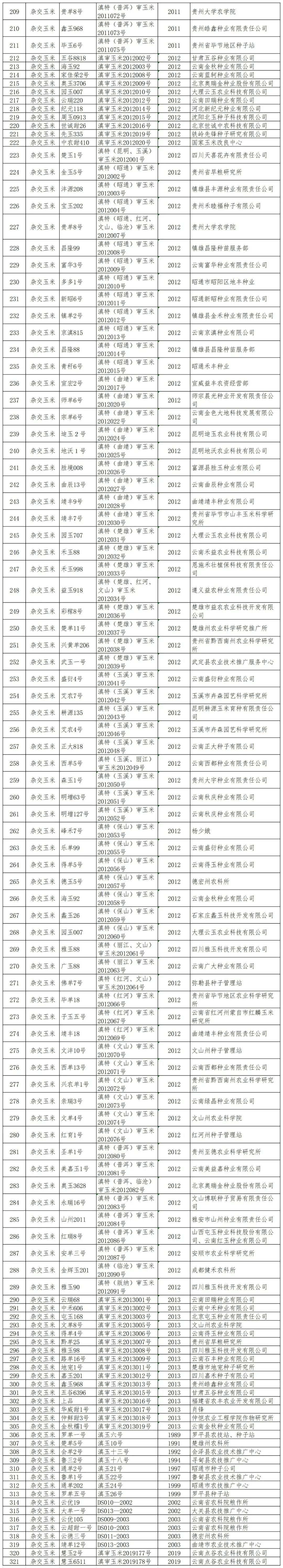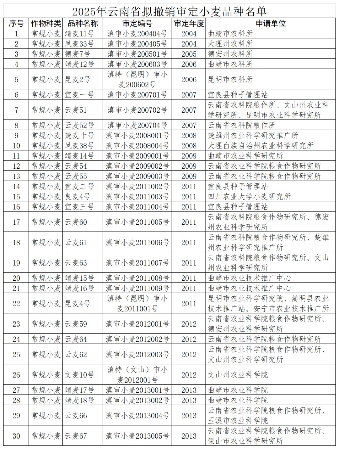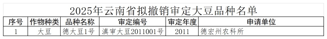 云南省农作物品种审定委员会办公室关于2025年拟撤销审定品种的公示