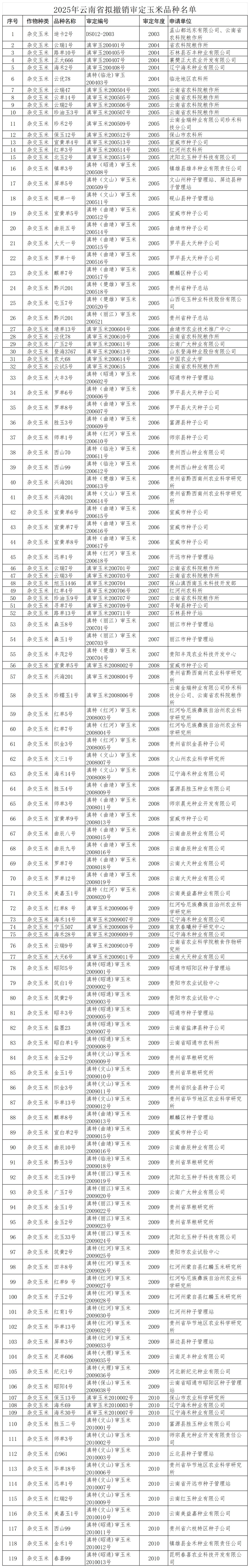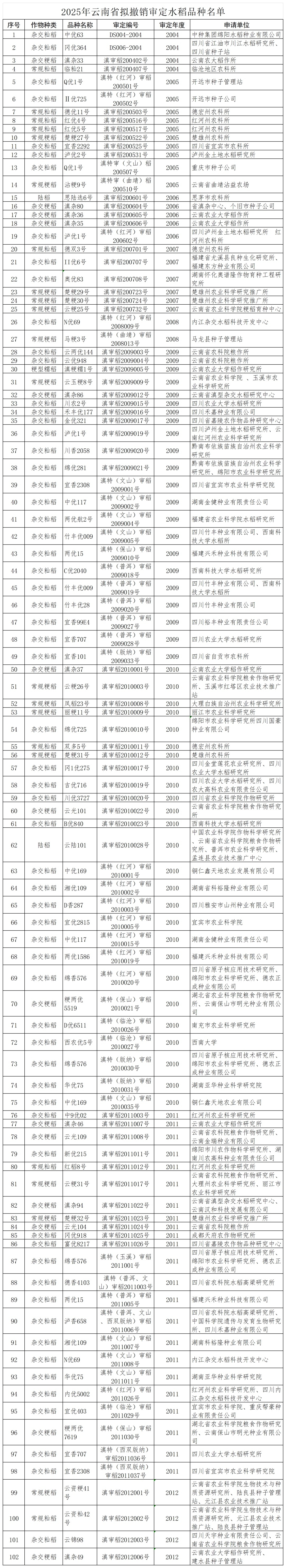 附件:2025年云南省拟撤销审定主要农作物品种清单